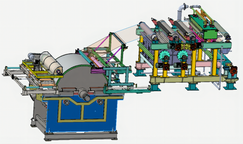 電解銅箔一體機(jī)設(shè)備主要由全鈦一體式陽極槽、進(jìn)液流量分配裝置、陰極輥驅(qū)動裝置、陰極輥導(dǎo)電裝置、陰極輥、“O”型圈循環(huán)裝置、邊部密封裝置、擠液和清洗裝置、防氧化(鈍化)處理裝置、烘干裝置、切邊裝置、槽體支架、收卷裝置、電氣設(shè)備和控制系統(tǒng)等組成。