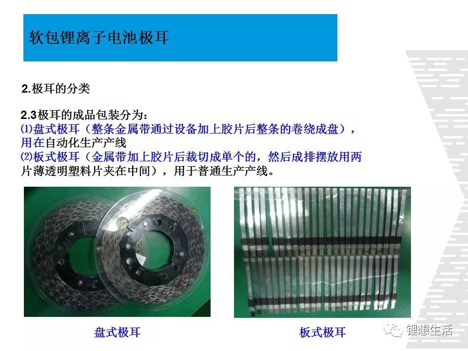 ⑴盤式極耳(整條金屬帶通過設(shè)備加上膠片后整條的卷繞成盤),用在自動化生產(chǎn)產(chǎn)線