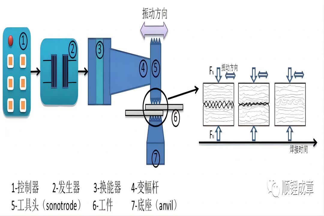 鋰離子電池超聲焊接原理及影響因素焊接工序作為鋰電池制造工藝中的關(guān)鍵一環(huán),被應(yīng)用于鋰電池鋁/銅正負(fù)集流體、極片以及電池封裝等多個(gè)位置的連接,任何焊接接頭缺陷都將顯著影響鋰電池性能的一致性。因此,理解超聲焊接過程十分必要。1、超聲焊接原理在超聲焊接過程中